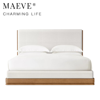 Katı ahşap kumaş yatak basit 1.8m 2.2m çift kişilik yatak odası High-end king-size yatak ev kullanımı için fransız Retro yumuşak arkalığı